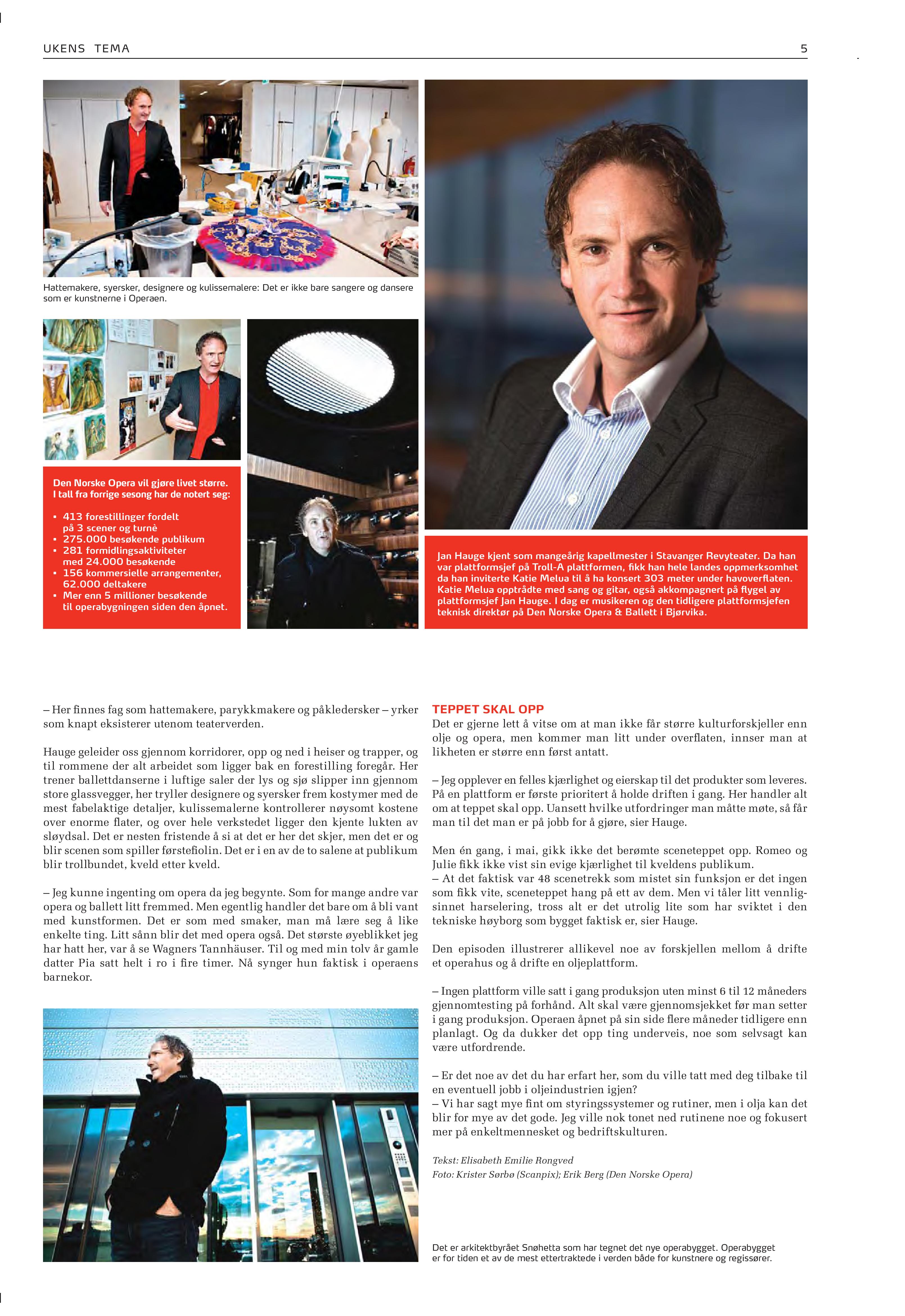 Kulturmøtet. Intervju med teknisk direktør Jan Hauge i Den Norske Opera (side 4–5). Oppdragsgiver: Oktan Stavanger. Kunde: EiendomsMegler 1