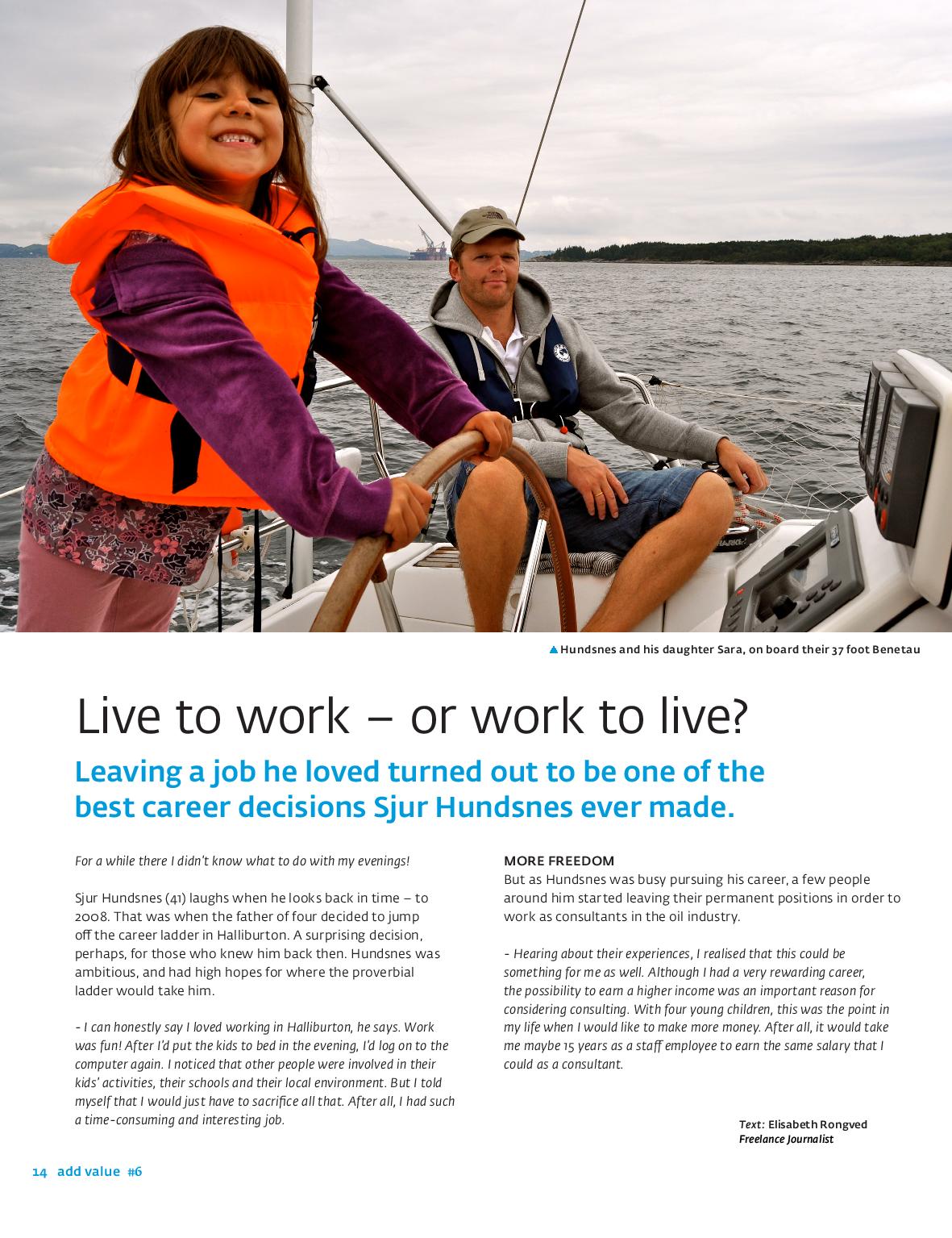 Live to work – or work to live? (side 14) Add Value 6/2012.